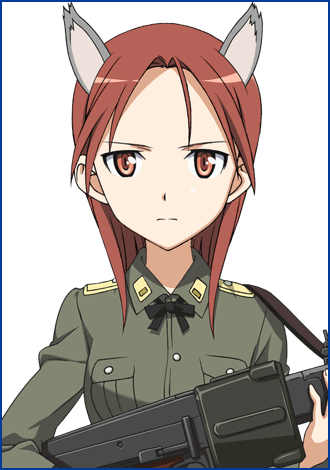 She become an entire member of the 501st, and show their ability to informally free air corps, individual veterans include veterans repeated modest. The achievement is also a mood maker liven up the atmosphere of the troops from the standing position minus one step, and so as to act as a member of the Corps Pilot Officer Lucchini was especially big problem child. She was Flying Officer until just the beginning of the anime, when she got promoted. She has set a numerous variety of speed records in the military in the local salt flats before the anime. However, she gets confined to her room very often due repeatedly doing things like violation of orders, disregard for military regulations and destruction of Striker Unit. However, her abilities was so high that a letter of promotion to Flight Lieutenant was send. It was lost in a pile of papers somewhere, but she finally gets the promotion. She also has problems with Flight Lieutenant Barkhorn, but they were eased reciently. (note: badly worded)
